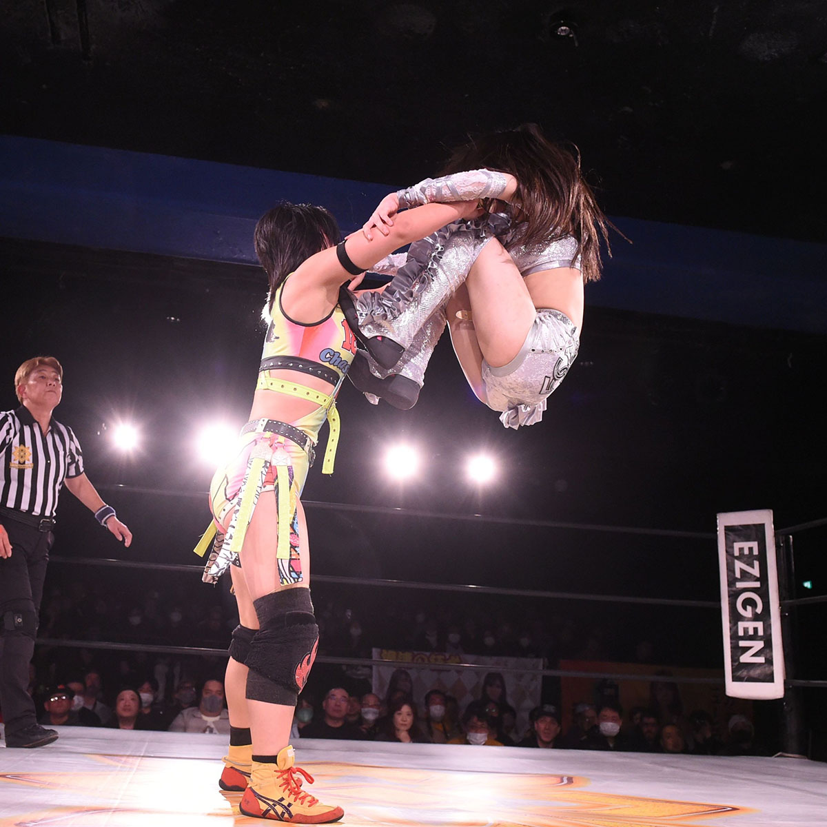しかし聖怜もカウンターのドロップキックを返し、セカンドロープに上がるとミサイルキック。これを心希が振り払いサソリ固めを決める。聖怜がロープエスケープ。心希が裏投を狙うと聖怜が張り手から投げ放しジャーマン。立ち上がると心希が裏投げ。そして押さえ込みでフォールを狙う。さらにハイキック、掌底は聖怜がスピアーでカット。心希はハイキックからロープに走る。聖怜がキャッチし体落とし。ジャーマン狙いは心希が着地、頭部に蹴りを入れてかわしていく。さらに心希がハイキック。しかし聖怜がカウンターのスピアー、追い討ちのスピアーでカバー。2カウントで返されると最後は、サイド・スープレックスからジャーマン・スープレックス・ホールドを決め、聖怜の勝利となった。