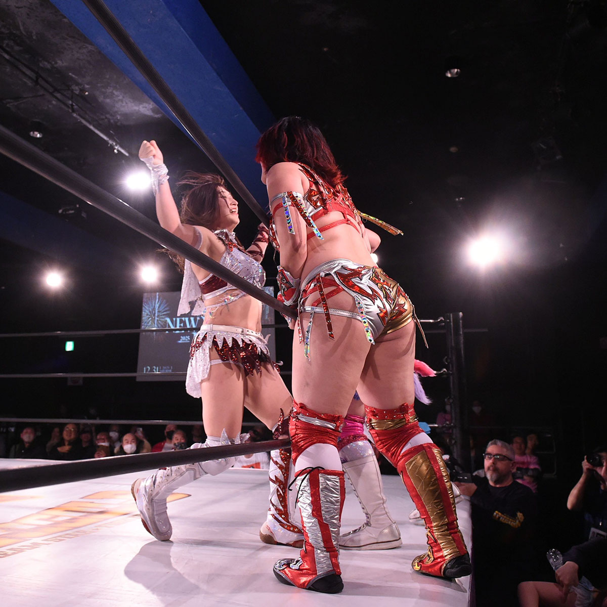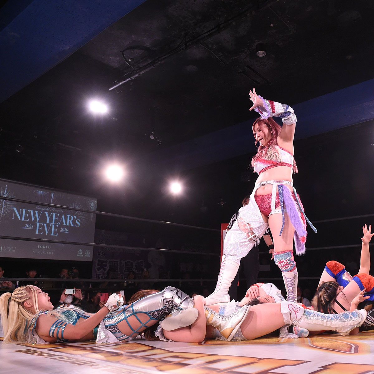 松井は後藤に串刺しドロップキック、クロスボディ、石川にダイビング・フットスタンプを決める。しかし松井がロープに走ると後藤がカウンターでラリアットを決め、ジャイアントスイング20回転。そしてCHIAKIが9番手で登場。CHIAKIは後藤にイスをぶつけ、他の選手を威嚇。レフェリーに注意されるとイスを離し松井を抱え上げる。松井はグーパンチのポーズをとる。きずな、小桃、橘、石川、弓月の順にぶつけ、CHIAKIは「2025年、おつかれ〜!」とポーズ。すると松井がスモールパッケージで丸め込む。松井は謝罪ポーズをするも裏切られたCHIAKIはエルボーを打ち込む。そして松井とCHIAKIがエルボーの打ち合い。戸惑うレアが止めに入る。しかし、CHIAKIはレアを吹っ飛ばし、松井にアイアンクロー。そこへ越野SHOKO.が登場。