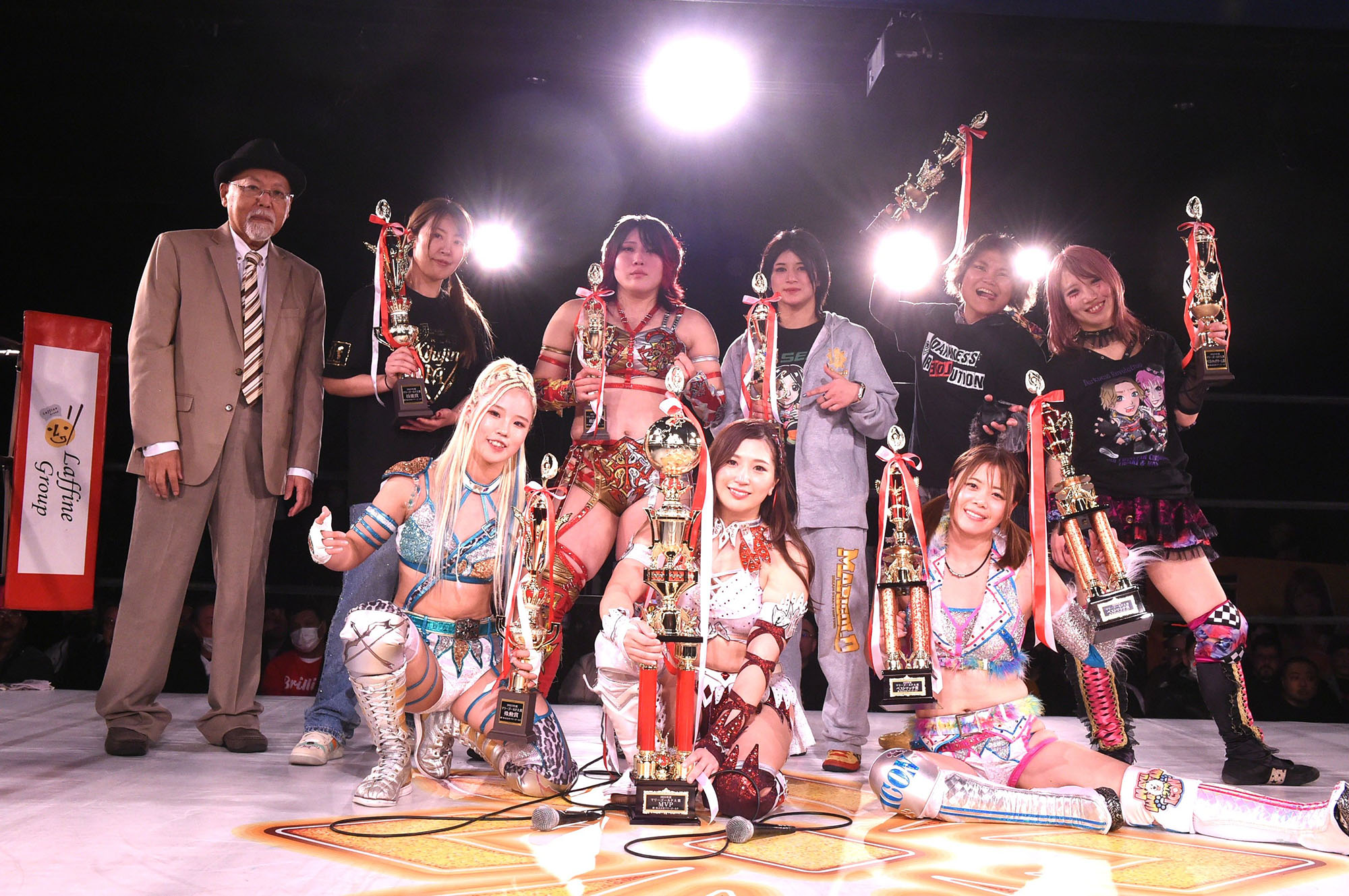 「ありがとうございます。まさか獲れると思ってなかったので、ほんとに嬉しいし、来年こそはシングルのベルトを巻きたいし。もっともっと上目指してプロレスラーとしてふさわしい人になりたいと思ってます。これからも応援よろしくお願いします」
