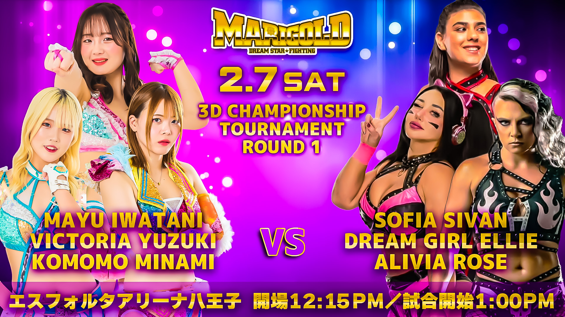 岩谷麻優&ビクトリア弓月&南小桃 vs ソフィア・シヴァン&ドリーム・ガール・エリー&アリビア・ローズ