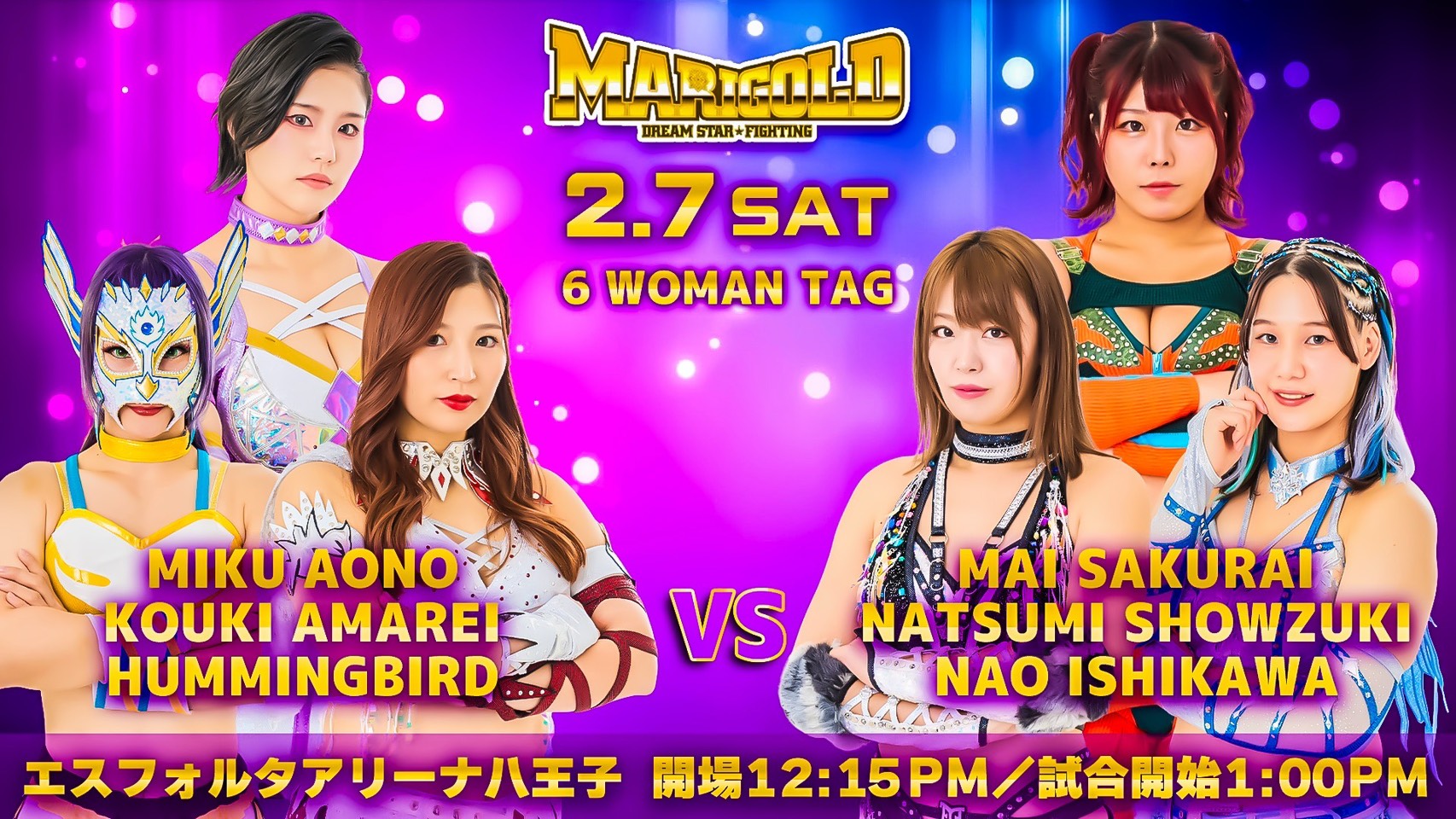 青野未来&天麗皇希&ハミングバード vs桜井麻衣&翔月なつみ&石川奈青