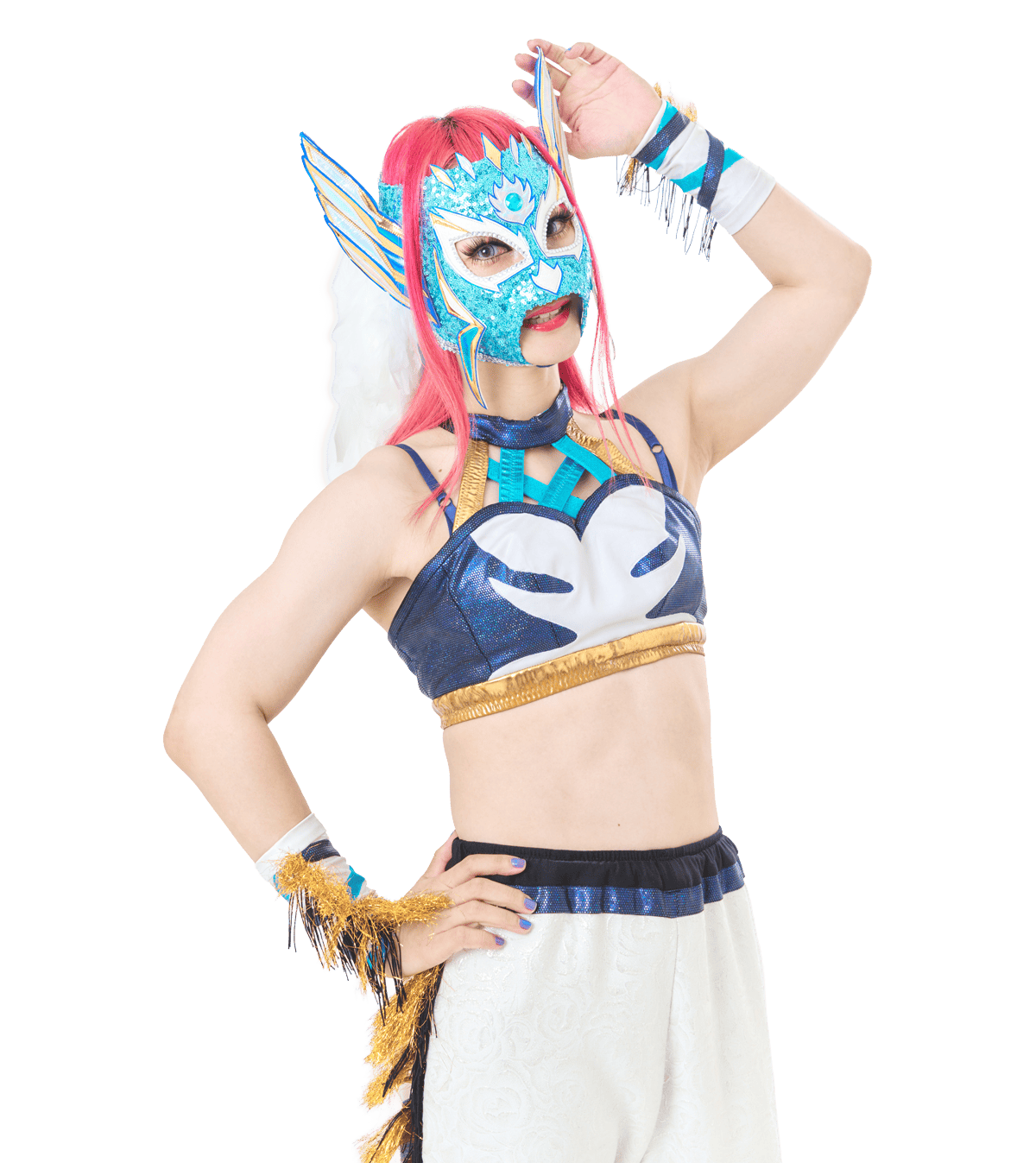 2024年10月7日の後楽園ホール大会に突如、現れて翔月なつみの持つスーパーフライ級王座に挑戦表明。10月24日の後楽園の初陣でいきなりタイトルマッチという抜てきを受けた。身のこなしの柔らかさとトリッキーな動きの数々は今後、新風を呼んでいくだろうマスク美人である。
